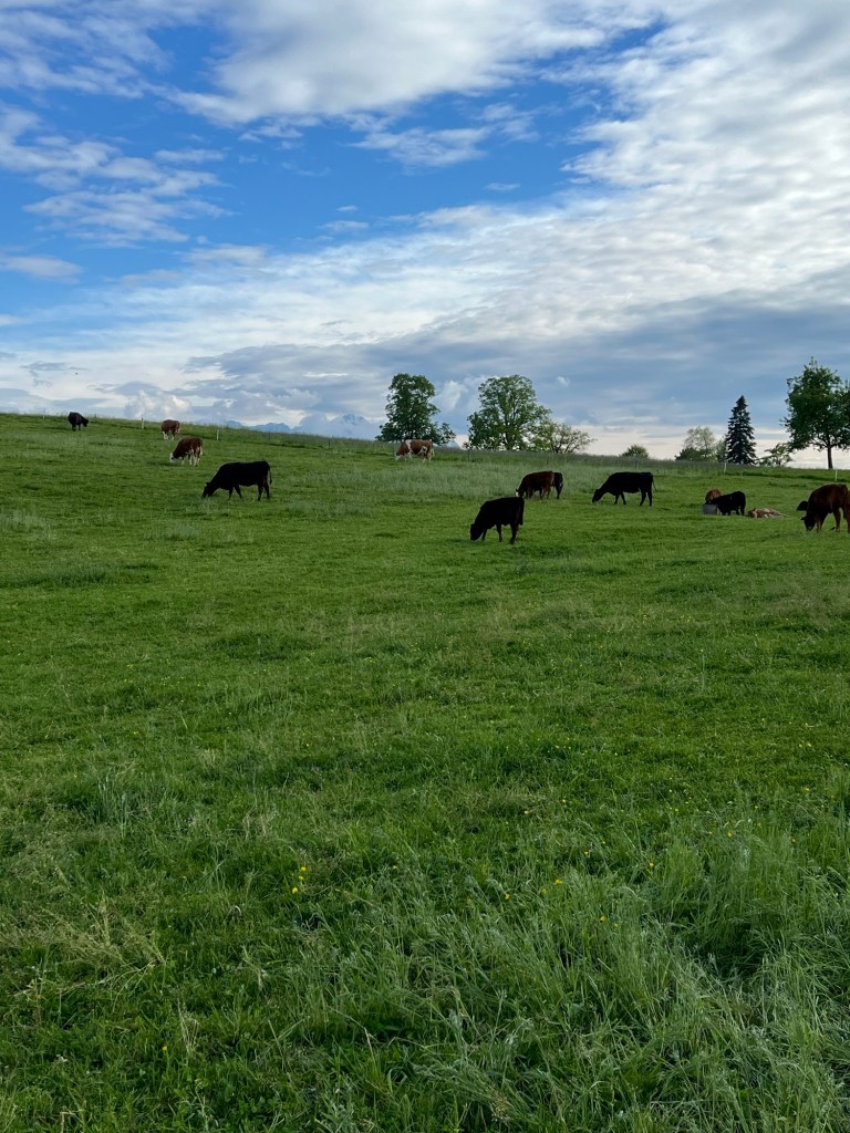 Daha sonra yine ormanın üst kısmında yer alan çiftliğin etrafında otlayan ineklere rastladım. Arada yeni doğmuş buzağılar da var. İnekler taze otlarla ve kekiklerle besleniyorlar. Yemyeşil otları yiyen hayvanlar akşam bembeyaz süt verecekler. Bu dünya hayatında düşünenler için ibret alınacak çok hadise var.